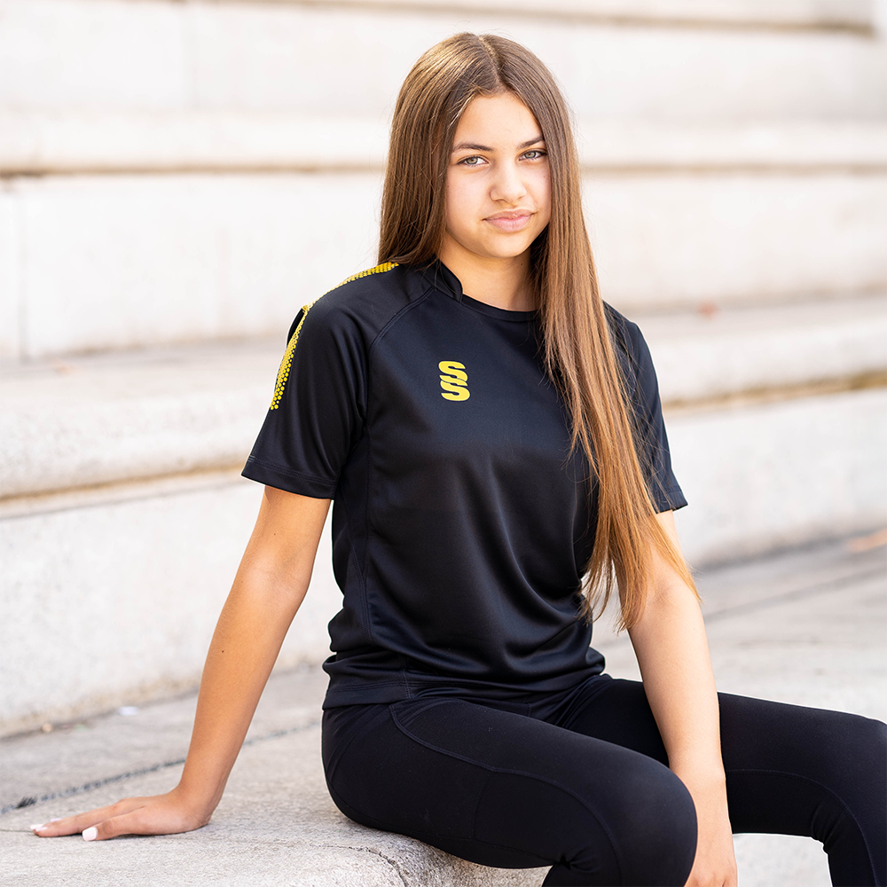 The Dual Games Shirt is made for performance with excellent polyester pique fabric. It's built with contoured underarm side panels in a breathable reverse pique fabric, a forward side seam detail and flat-lock stitching for ultimate smoothness and comfort. It features a stand collar and raglan seam sleeves, with available contrast colour graphic prints available on the shoulders. A choice of our Surridge SS logo and dual print colours to suit your branding. Our Surridge SS logo is situated on the right chest.